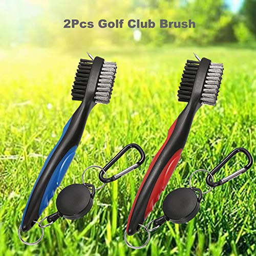 Borogo Golf Club Brush Groove Cleaner, 2-Pack Golf Club Brush and Club Groove Cleaner 2 Ft Retractable Zip-line and Aluminum Carabiner Cleaning Tools