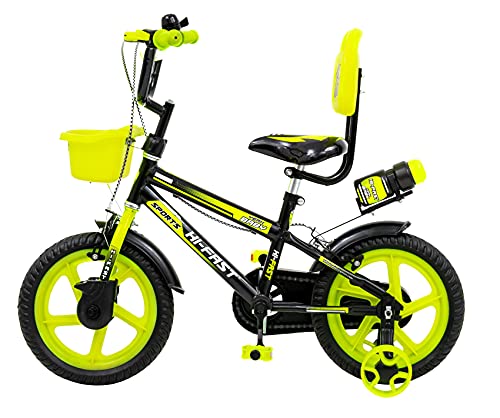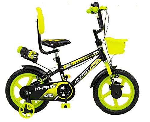 HI-FAST 14 Inch Sports Semi-Assembled Cycle for Boys & Girls of 3 to 5 Years with Training Wheels (Frame: 14, Green)