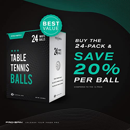 PRO SPIN Ping Pong Balls - White 3-Star 40+ Table Tennis Balls (Pack of 24) | High-Performance ABS Training Balls | Ultimate Durability for Indoor/Outdoor Ping Pong Tables, Competitions, Games