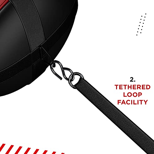 - The hook contrived at the lower-end of the bag connects the loop at the bottom with the floor anchor to avoid excessive movement. This provides stability and tether loop facility can be connected to anchor floor or floor hook to get rid of excessive movement and bag sway due to heavy punches and kicking.