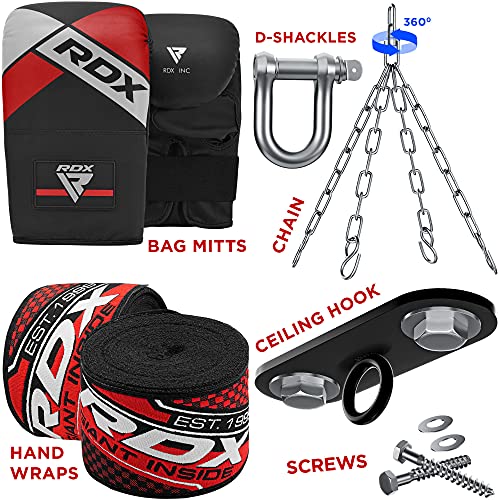 RDX Punching Bag Filled Set Kick Boxing MMA Heavy Muay Thai Training Gloves Punching Mitts Ceiling Hook Hanging Chain Anchor Martial Arts 4FT 5FT