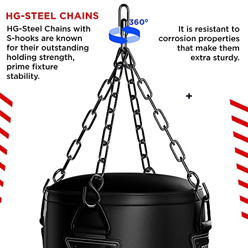 - Our filled boxing punching bags are equipped with high-quality Zero Impact G-core technology that is manufactured through Maya hide leather. Our punching bag provides No Tear, and exclusive technology helps this product take severest of hits and still last long with you without getting deformed.